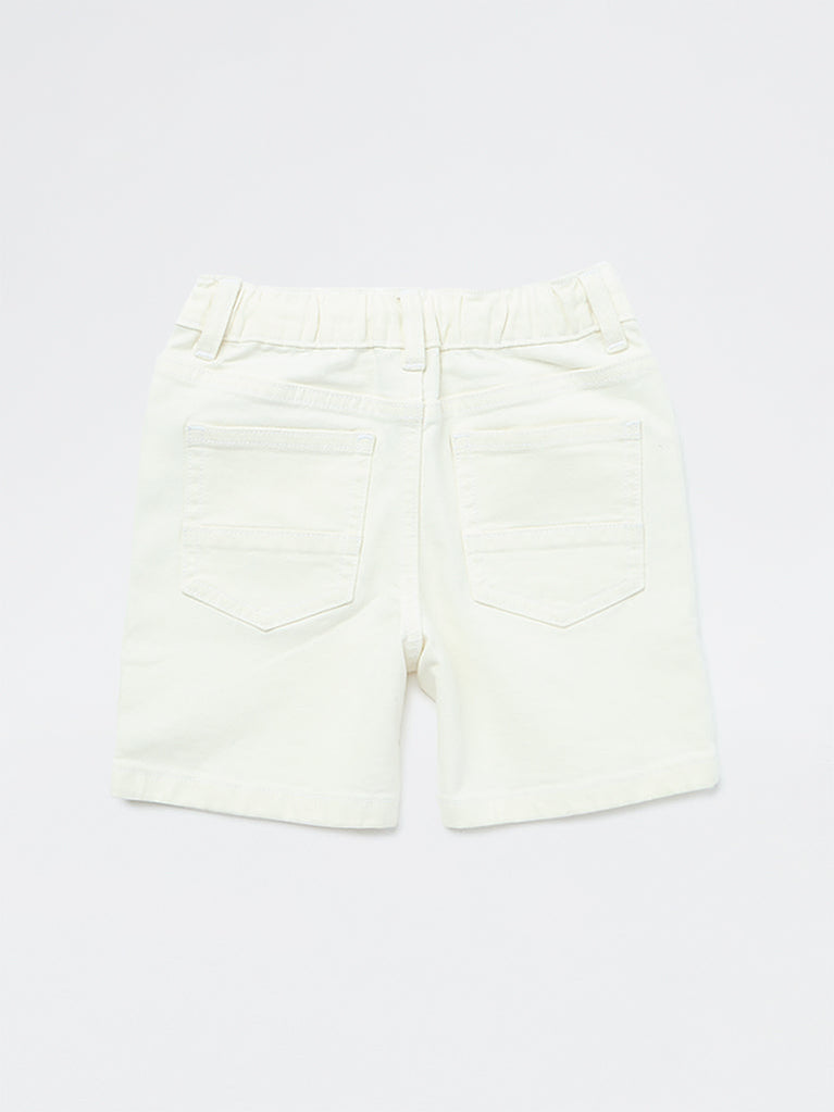 HOP Kids Boys Off-White Mid-Rise Denim Shorts