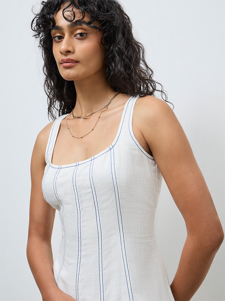LOV Off-White Striped Linen-Blend A-Line Dress