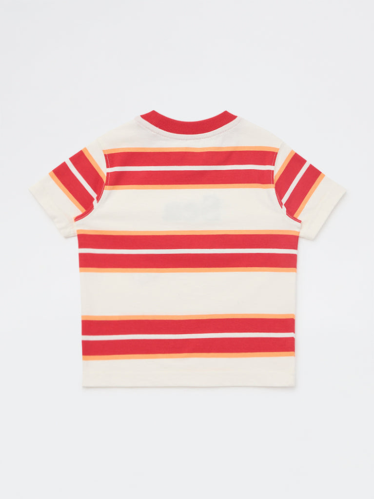 HOP Kids Boys Red Striped Cotton T-Shirt