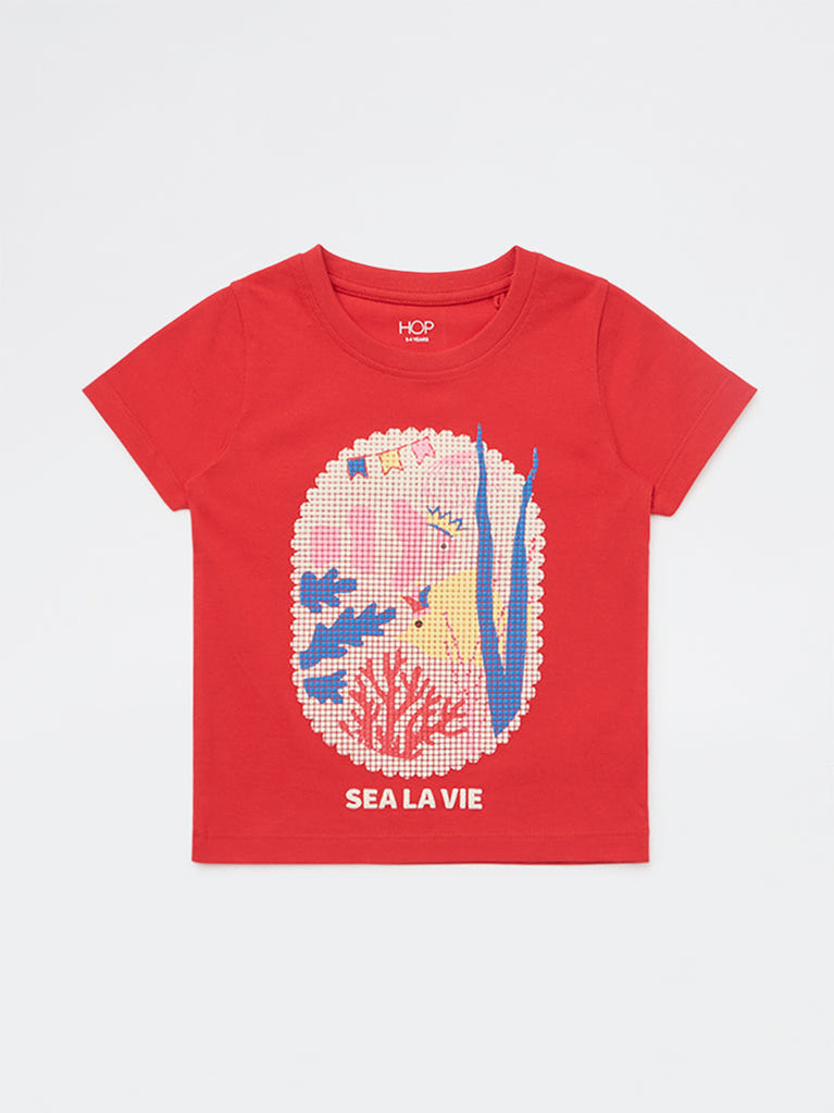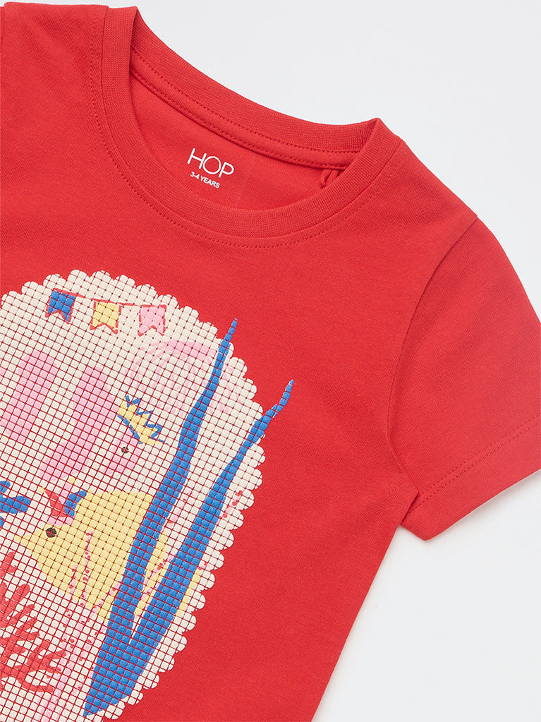 HOP Kids Girls Red Graphic Design Cotton T-Shirt
