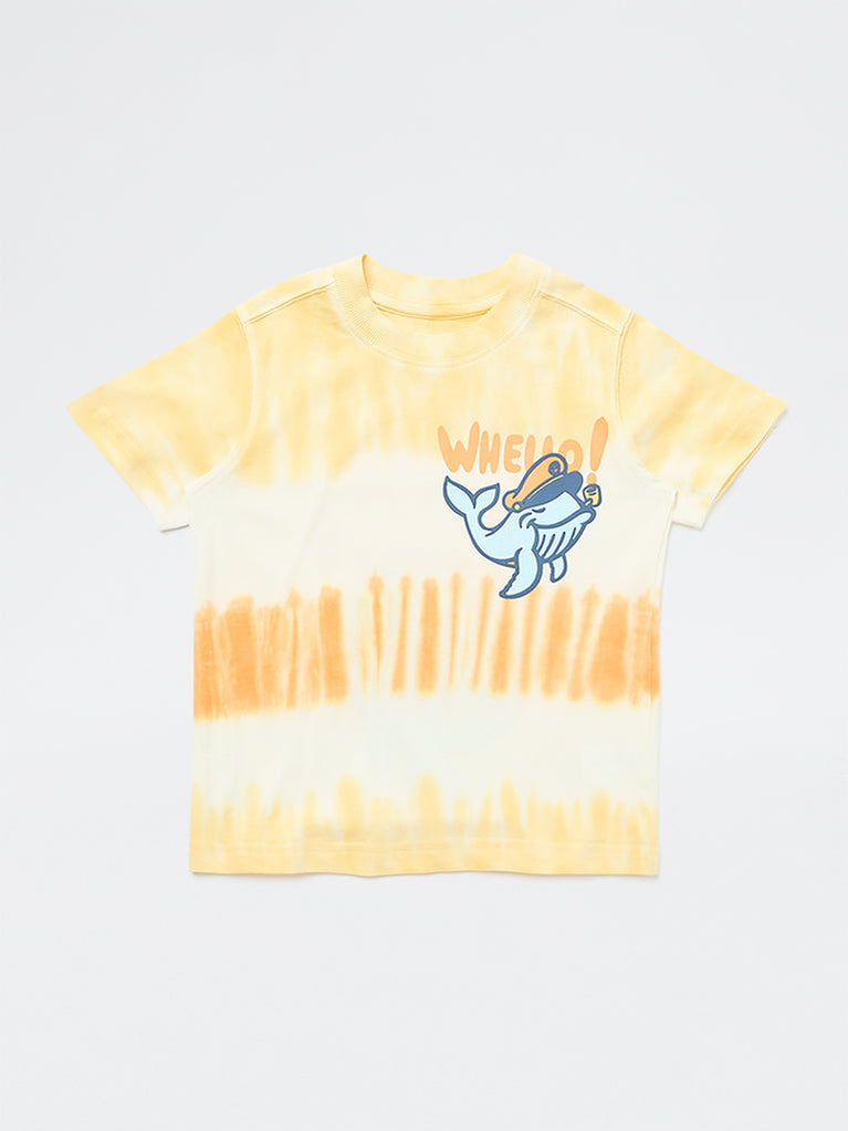 HOP Kids Boys Yellow Tie-Dye Printed Cotton T-Shirt