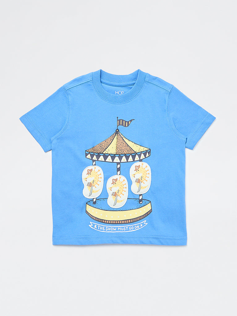 HOP Kids Boys Blue Graphic Design Cotton T-Shirt