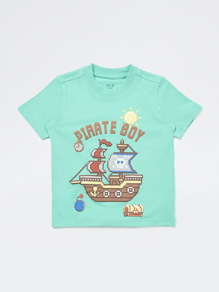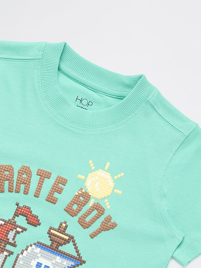 HOP Kids Boys Mint Graphic Design Cotton T-Shirt