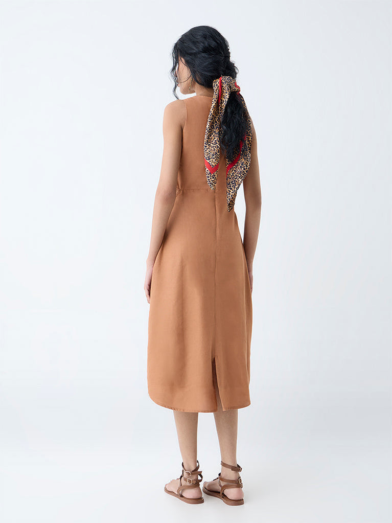 This tan dress from Bombay Paisley is elevated with a charming floral print for effortless appeal. Featuring a round neck and a playful cut-out detail at the waist, it strikes the perfect balance between feminine style and contemporary edge.