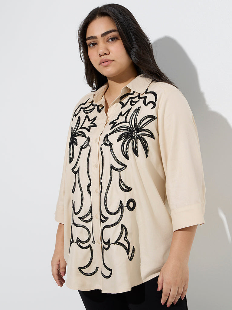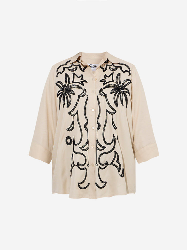 Gia Beige Embroidered Shirt