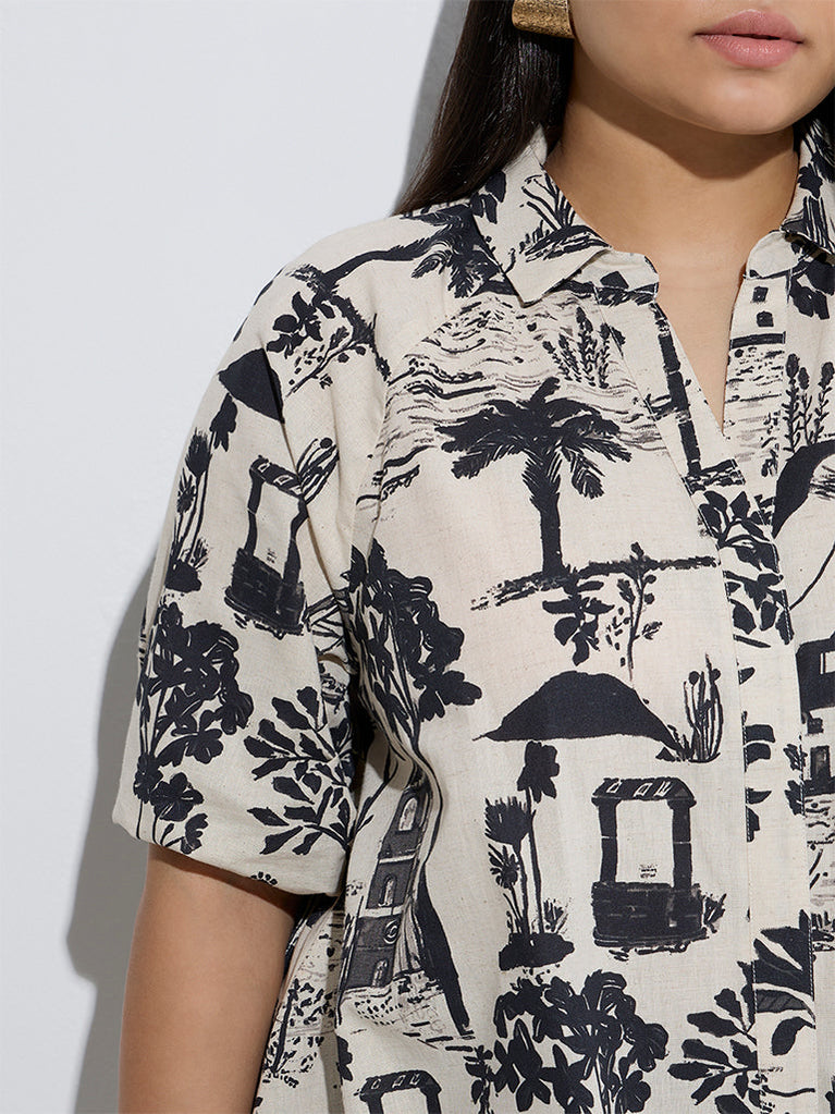 Gia Beige Scenic-Inspired Cotton-Blend Shirt