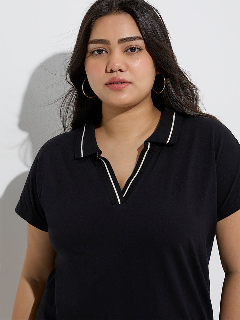 This black polo t-shirt from Gia is constructed from pure cotton for daily comfort. Framed with a polo neck and dolman sleeves, it blends classic styling with modern ease.