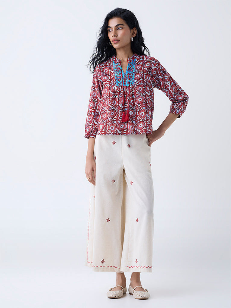 Bombay Paisley Off-White Floral Embroidered Cotton Top
