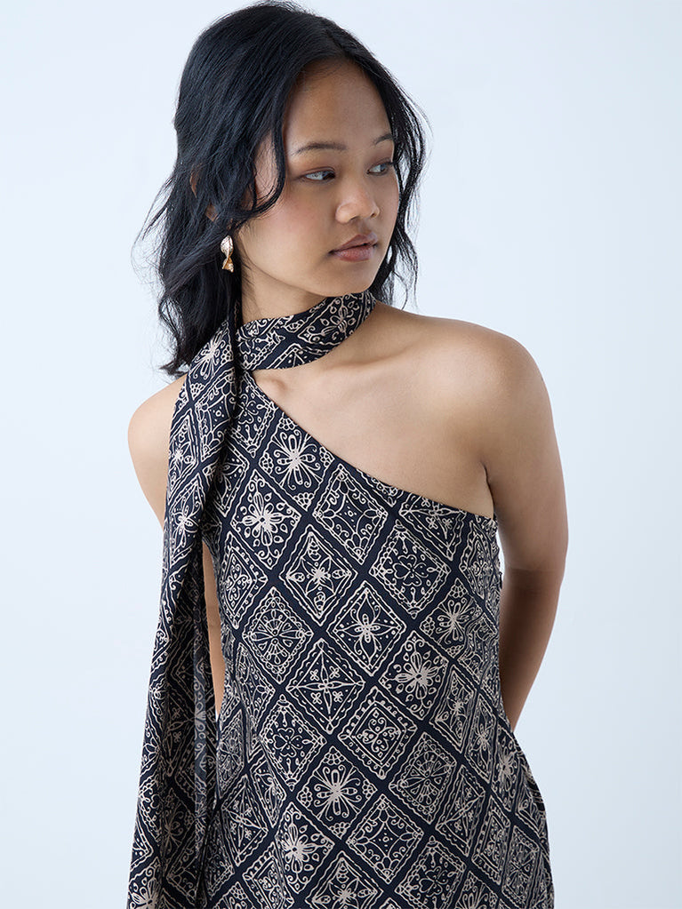 Bombay Paisley Black Printed One-Shoulder Dress
