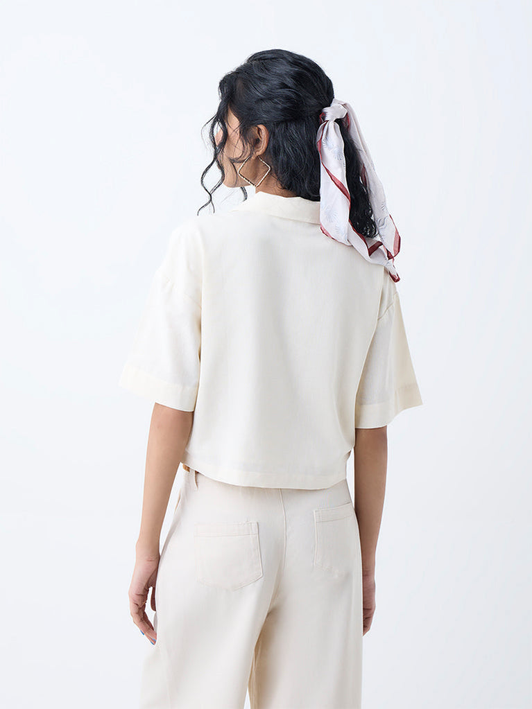 Bombay Paisley Off-White Crochet-Knitted Cotton Top