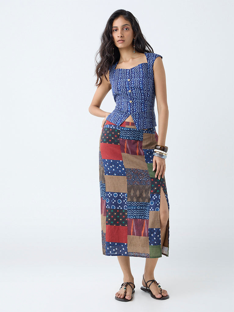 This indigo top from Bombay Paisley showcases distinctive ethnic-inspired prints that add sophisticated charm. Woven from premium fabric, it features a flattering sweetheart neck and sleeveless cut for comfort. A button placket at the back, thoughtfully spaced, adds an alluring finish.