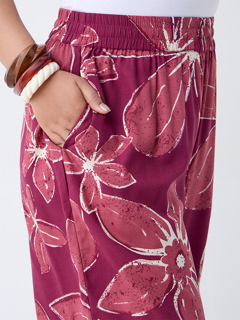 Made for moments that call for comfort without compromise, these plum floral palazzos from Diza bring a hint of elegance to everyday wear. The soft, breathable fabric flows beautifully, while the elasticated waistband and side pockets keep it practical. The relaxed fit makes it easy to pair with kurtas or tunics for a cohesive, festive-ready look.