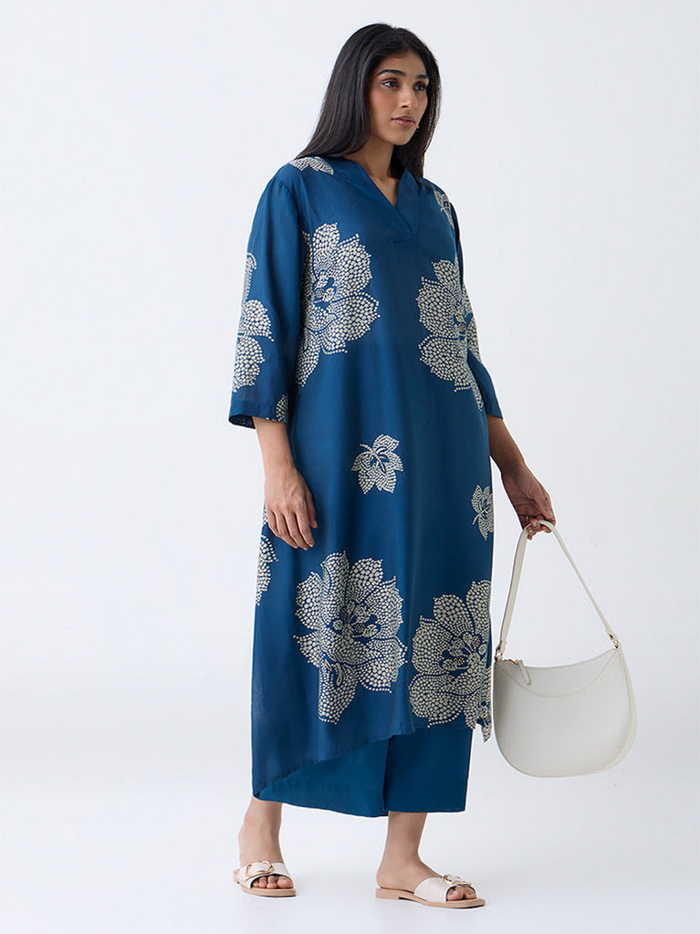This blue tunic from Diza adds a touch of sparkle to understated sophistication. Detailed with a shirt collar and concealed placket, it stands out through intricate floral cutwork and bead embroidery. The lightweight fabric drapes gracefully, making it easy to wear for daytime festivities or evening gatherings that call for refined style with a hint of shine.