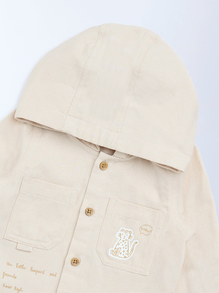 Bring a touch of fun to your little one’s wardrobe with this beige shirt from HOP Baby. Crafted from cotton-rich fabric, it features full sleeves, a functional hood and a button-up front for easy wear. Accented with animal prints on the front and back along with dual patch pockets, this piece combines comfort with an irresistibly playful look.