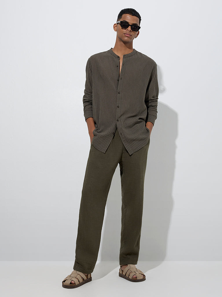 ETA Olive Striped Relaxed-Fit Cotton Shirt