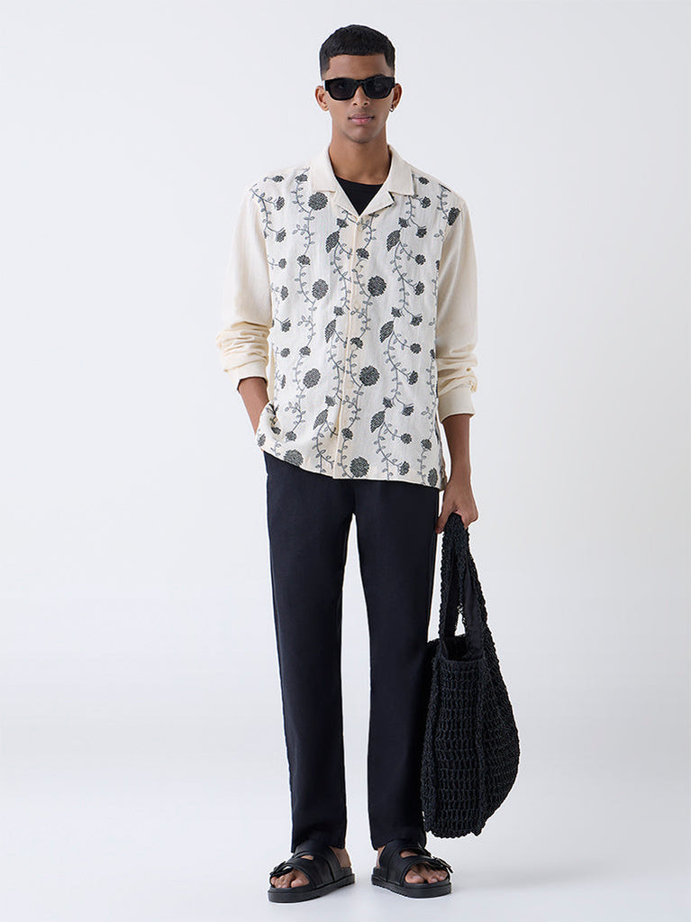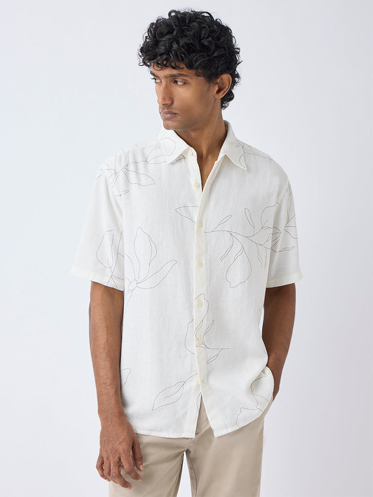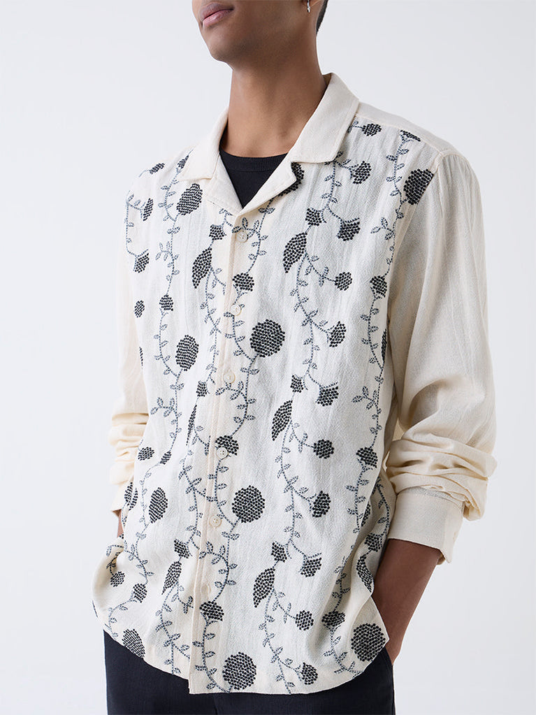 Ascot Off-White Floral Design Relaxed-Fit Shirt