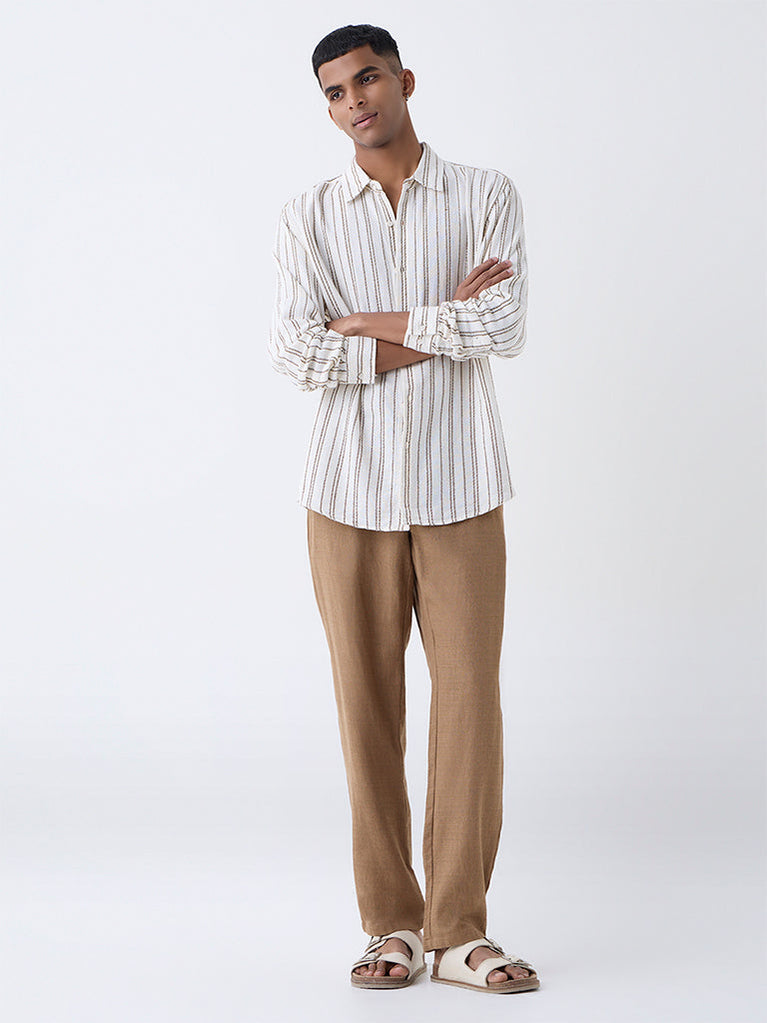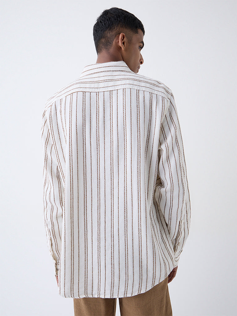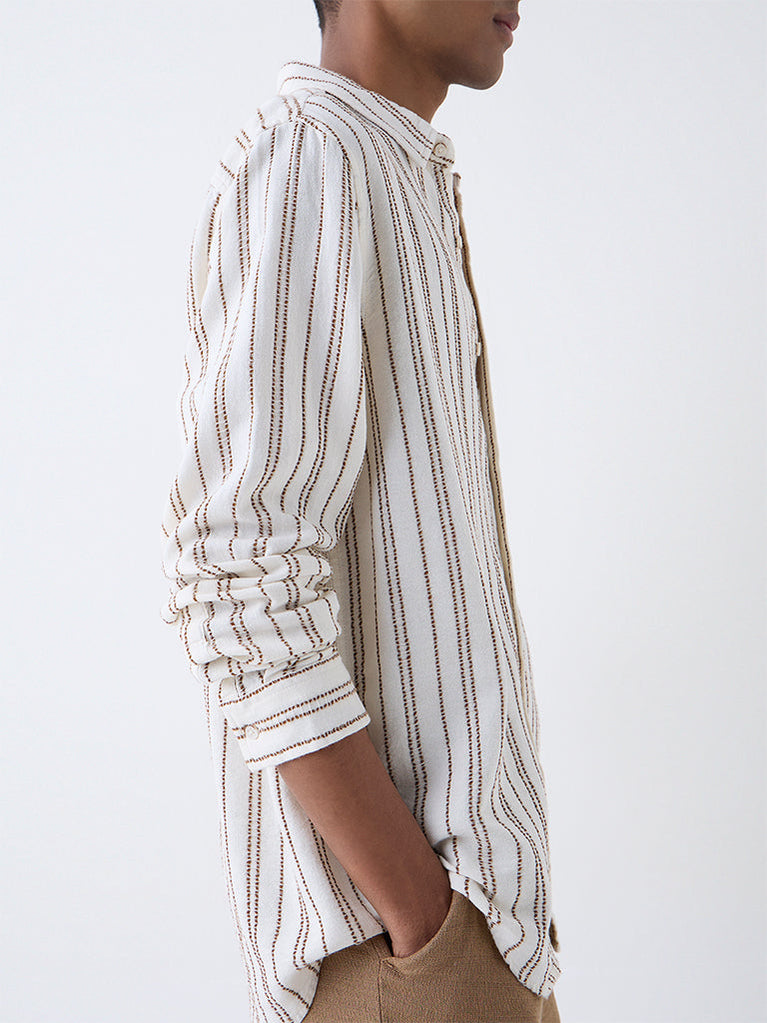 Ascot Dark Brown Striped Relaxed-Fit Linen Shirt