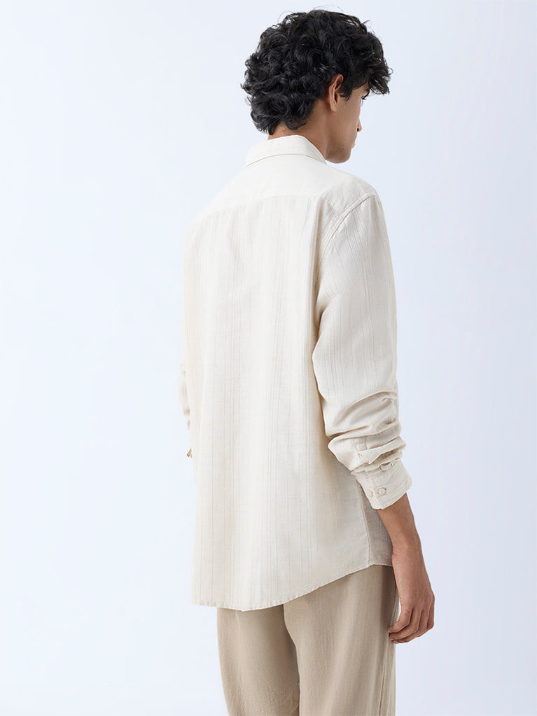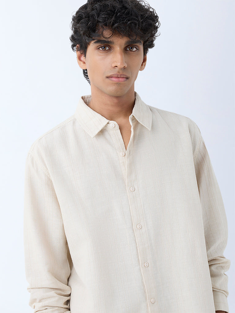 ETA Light Beige Self-Striped Relaxed-Fit Cotton Shirt