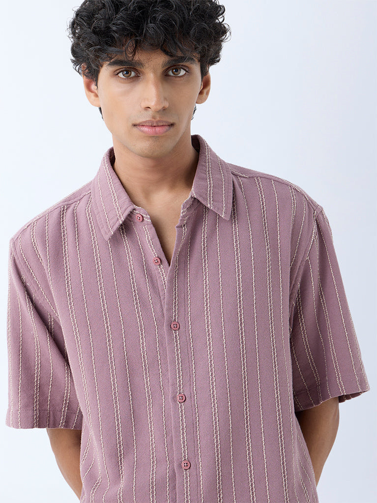 ETA Dusty Pink Stripe Patterned Relaxed-Fit Cotton Shirt