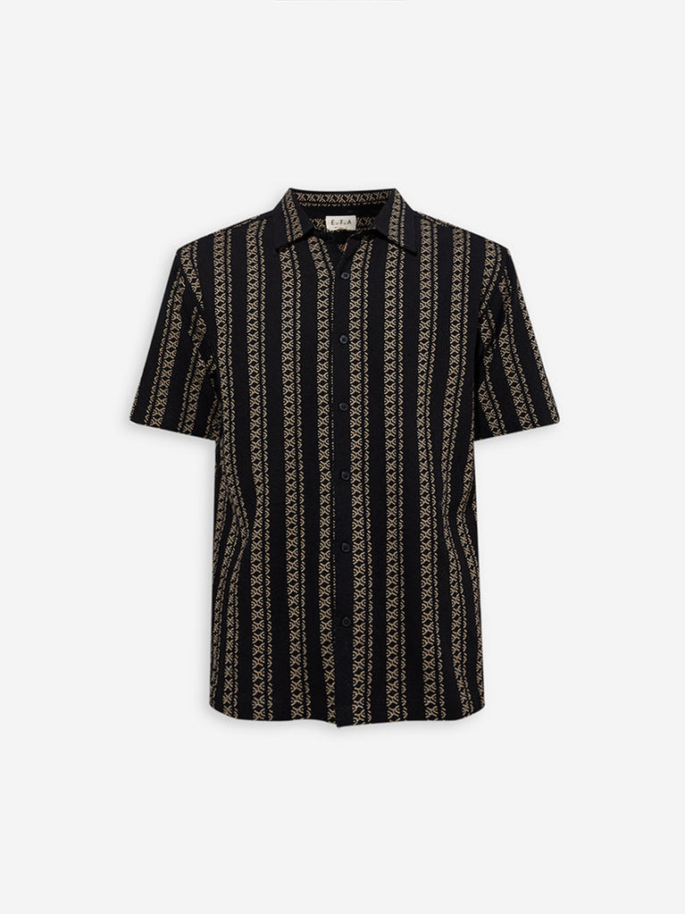 Ascot Black Leaf Design Relaxed-Fit Cotton-Blend Shirt