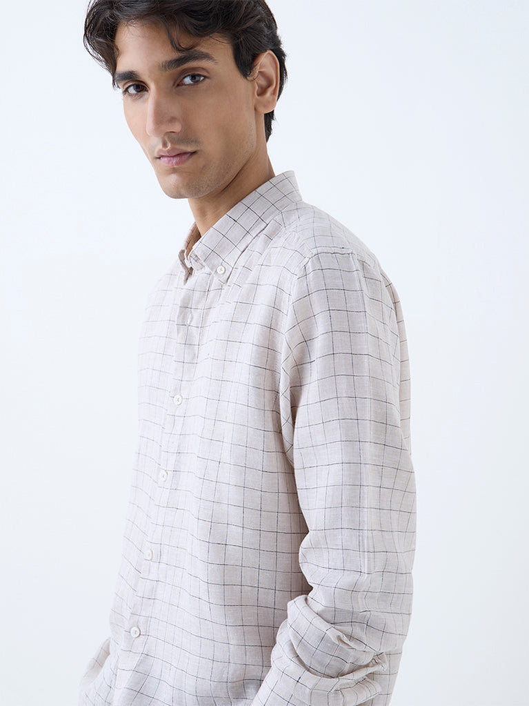 Ascot Beige Checks Design Relaxed-Fit Linen Shirt