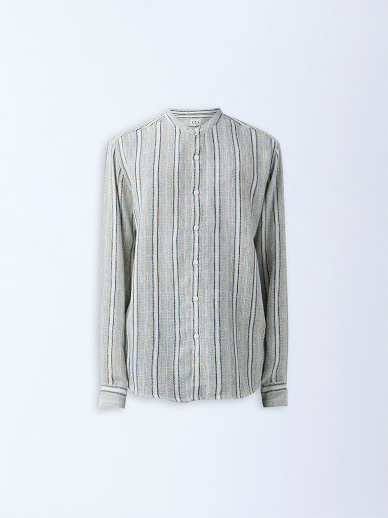 Shaped in a resort fit structure for all-day ease, this off-white shirt from ETA is defined with striped prints for a timeless look. Framed with a band collar that flows into a button placket, this full-sleeved silhouette offers a polished upgrade to your everyday wardrobe.