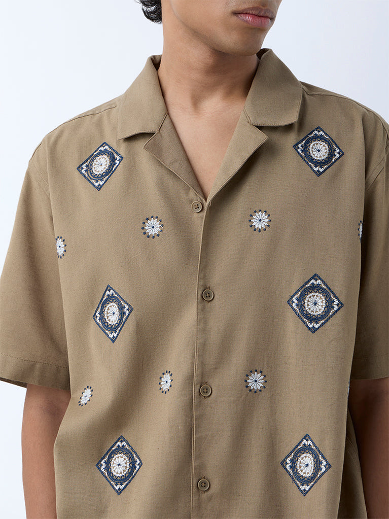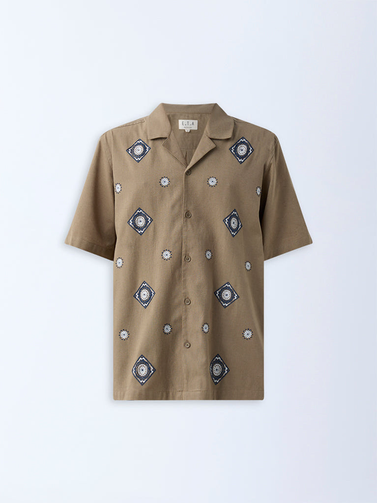 ETA Olive Embroidered Relaxed-Fit Cotton-Blend Shirt
