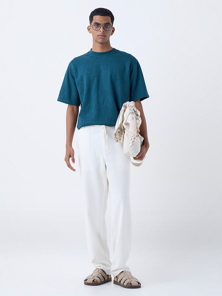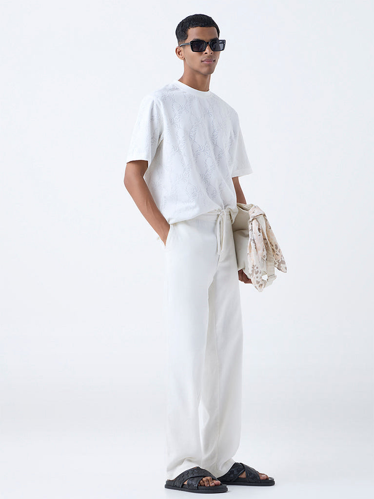 This white t-shirt from ETA is styled in a relaxed frame with a round neck and short sleeves for everyday ease. Crafted from breathable fabric, it is enhanced with all-over botanical textures that brings character to the look. Designed for comfort with an understated finish, it makes a contemporary addition to casual wardrobes.