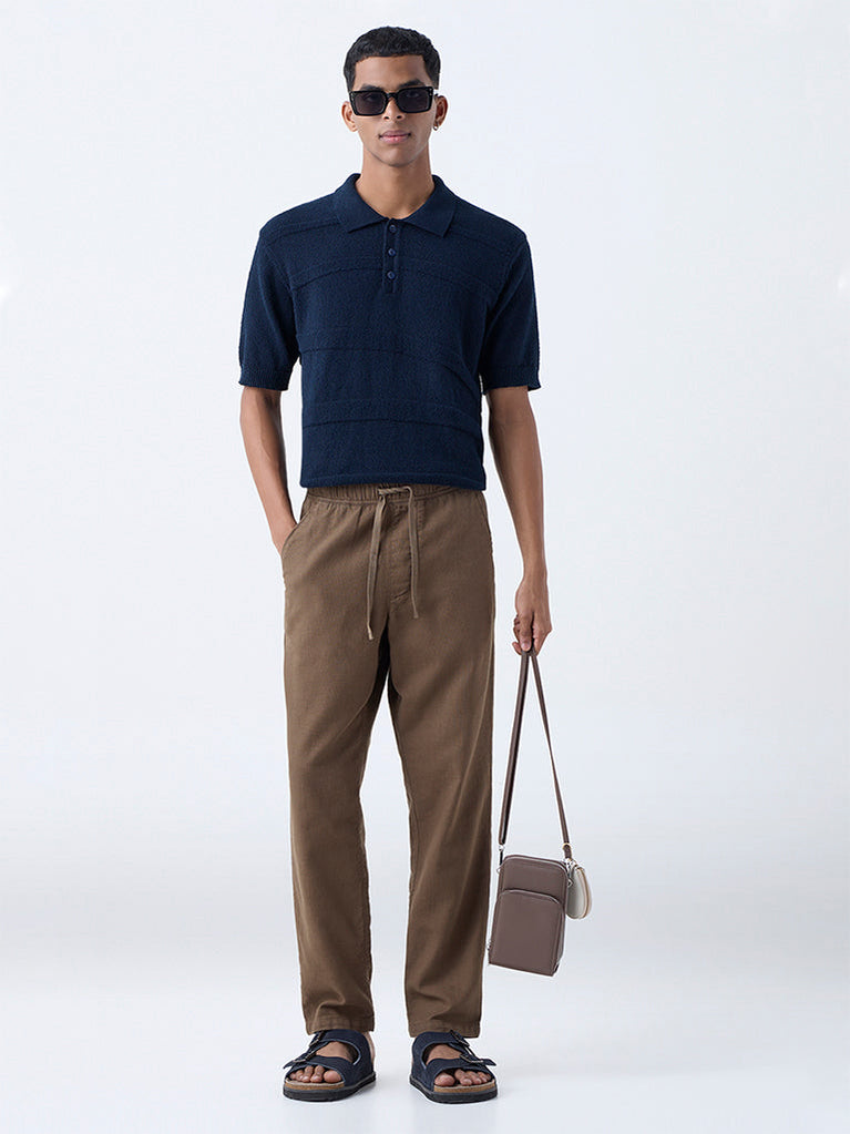 Ascot introduces this dark brown t-shirt crafted from pure cotton fabric, featuring a cable-knit finish that adds subtle texture to the design. Cut in a relaxed silhouette, it is styled with a crew neck and short sleeves, making it an effortless choice for smart-casual dressing.
