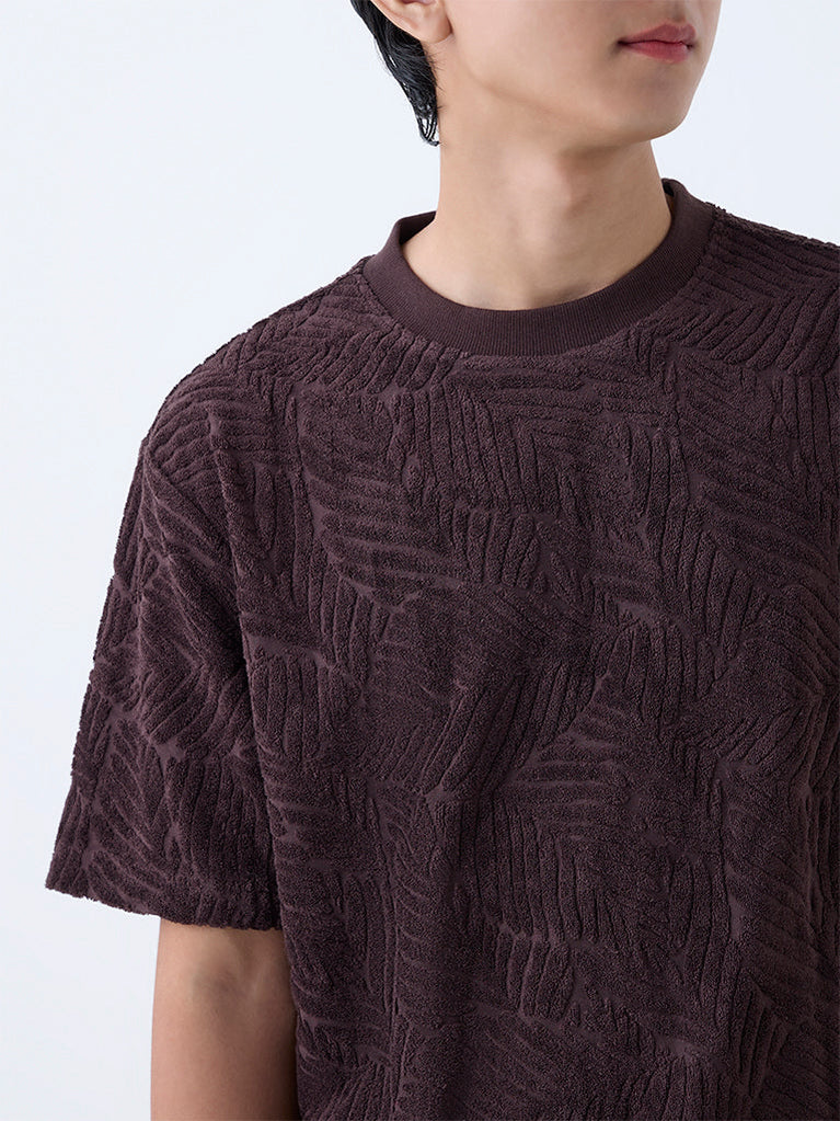 Ascot Dark Brown Cable-Knit Relaxed-Fit Cotton T-Shirt