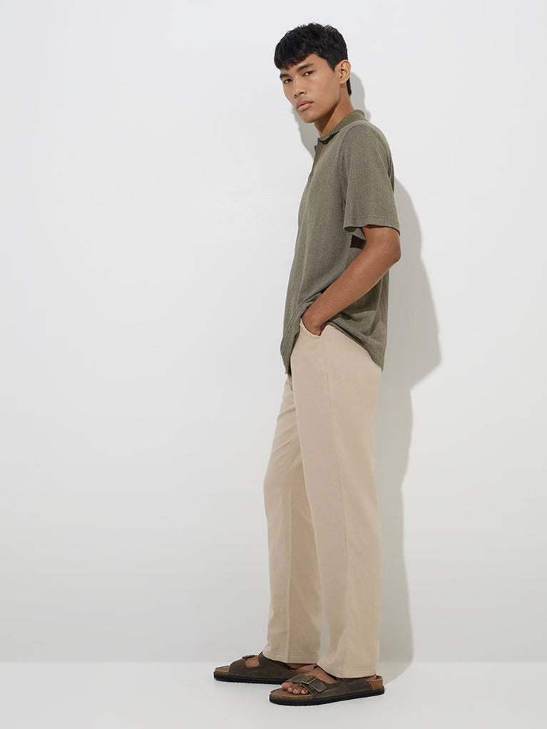 ETA Taupe Knit-Textured Relaxed-Fit Polo T-Shirt