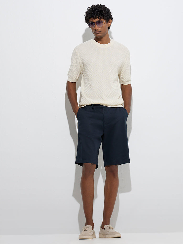 ETA Navy Solid Relaxed-Fit Cotton T-Shirt