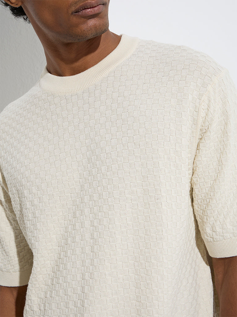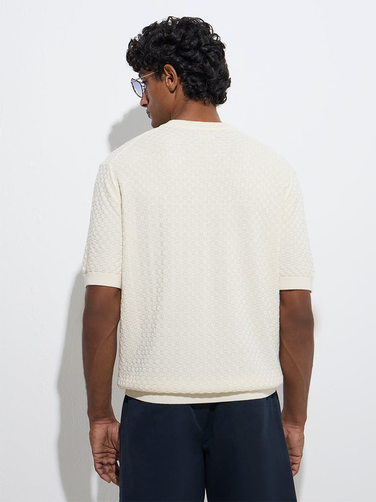 ETA White Knit-Textured Relaxed-Fit T-Shirt