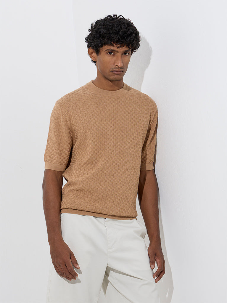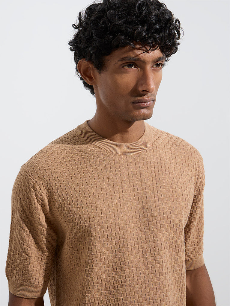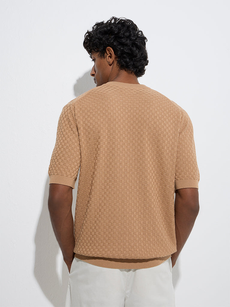 Ascot Dark Brown Textured Relaxed-Fit Cotton-Blend T-Shirt
