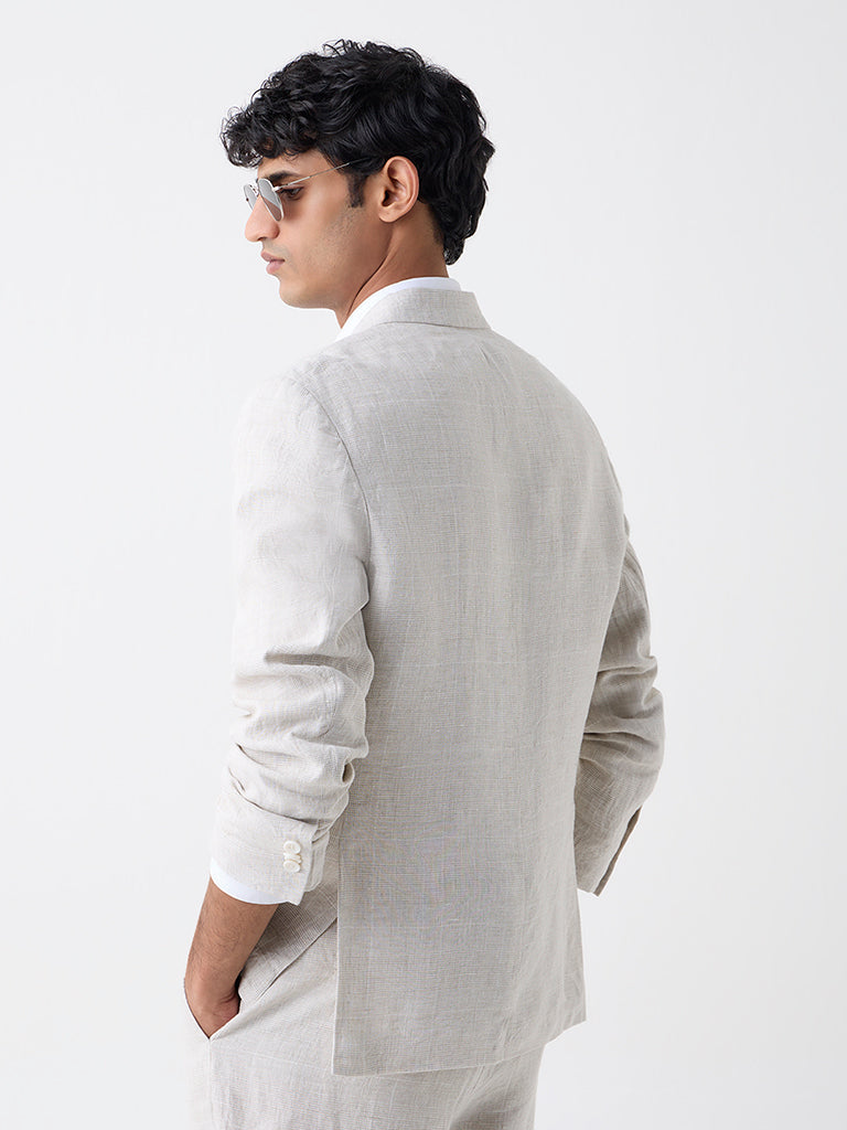 Ascot Beige Checkered Relaxed-Fit Linen Blazer