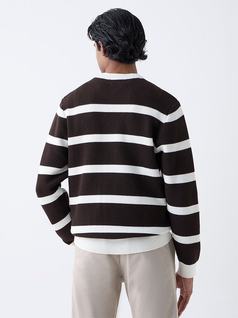 Ascot Dark Brown Striped Relaxed-Fit Cotton-Blend Sweater