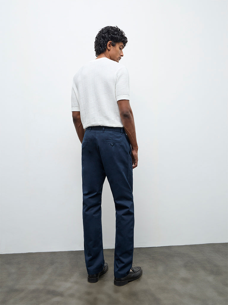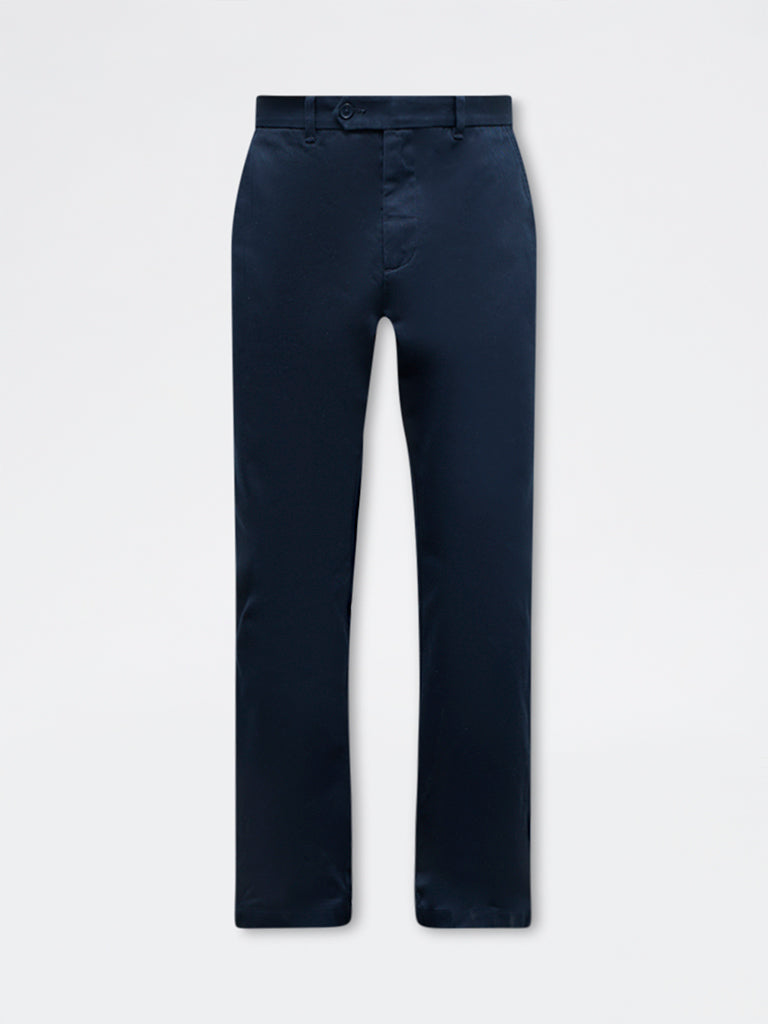 Ascot Navy Relaxed-Fit Mid-Rise Cotton Trousers