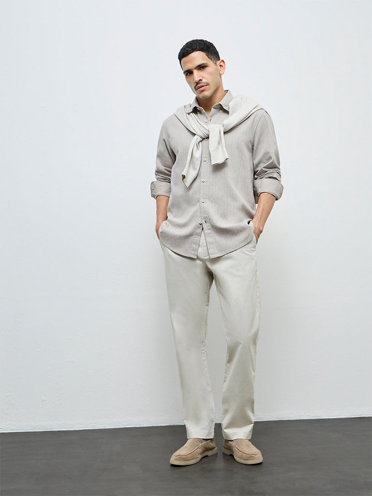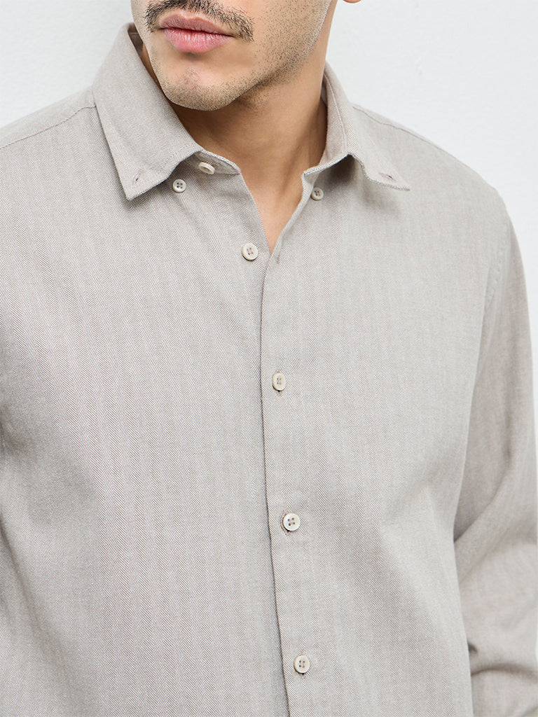 This taupe shirt from Ascot brings a refined ease to your everyday wardrobe. Shaped in a relaxed fit, it features a button-down collar and full sleeves for classic appeal. Crafted from a comfortable cotton-blend fabric, it offers a breathable feel suited for all-day wear.