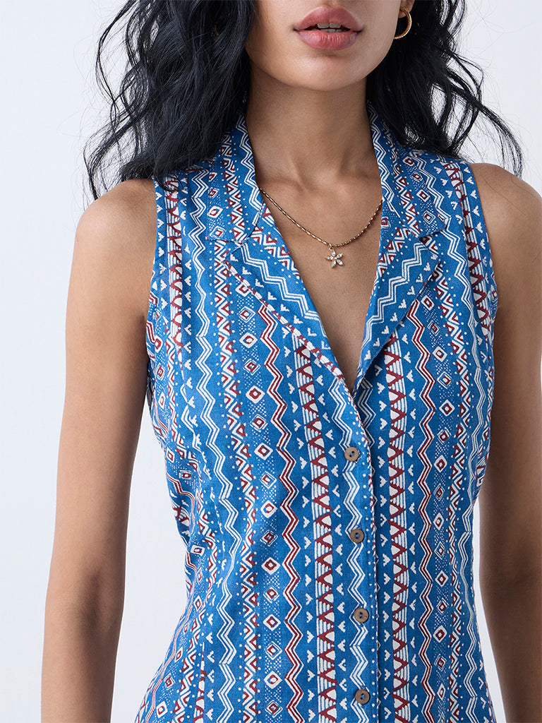 Bombay Paisley Blue Aztec Printed Cotton-Blend Shirt Dress