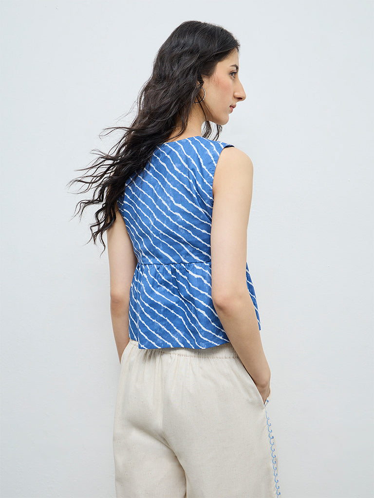 Bombay Paisley Blue Striped Cotton Peplum Top