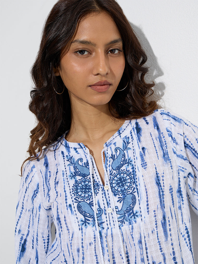 Bombay Paisley Blue Tie-Dye Patterned Cotton Top