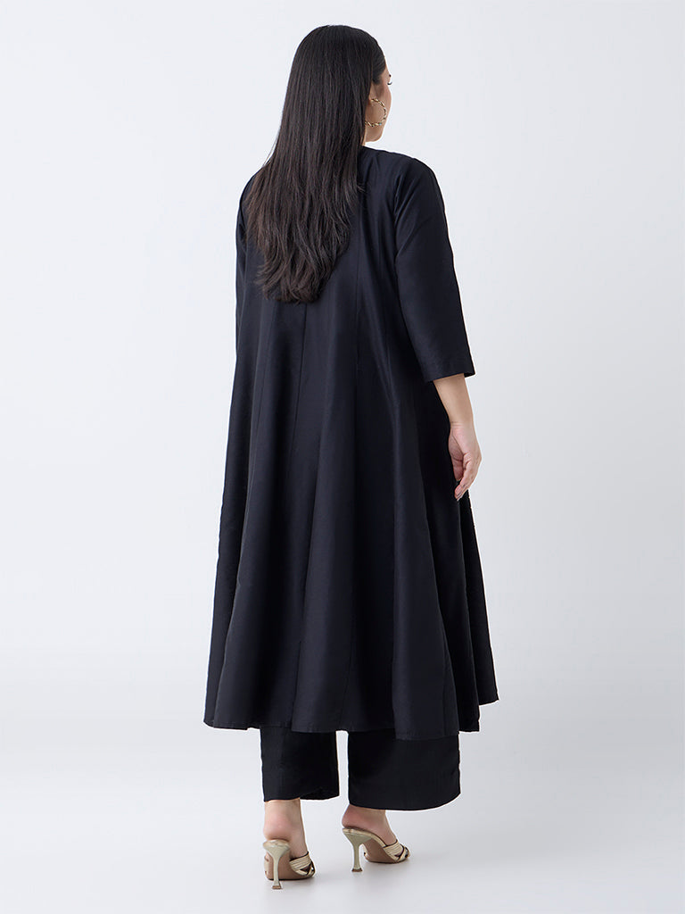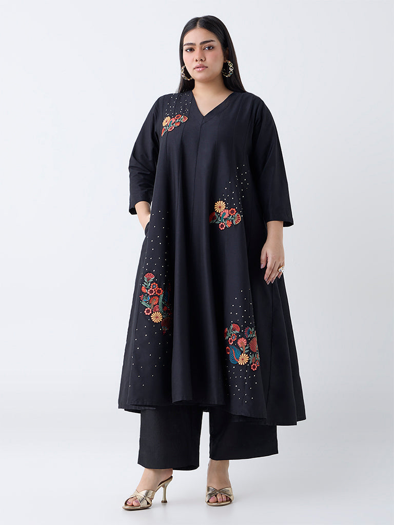 Diza Black Floral Embroidered Anarkali Kurta