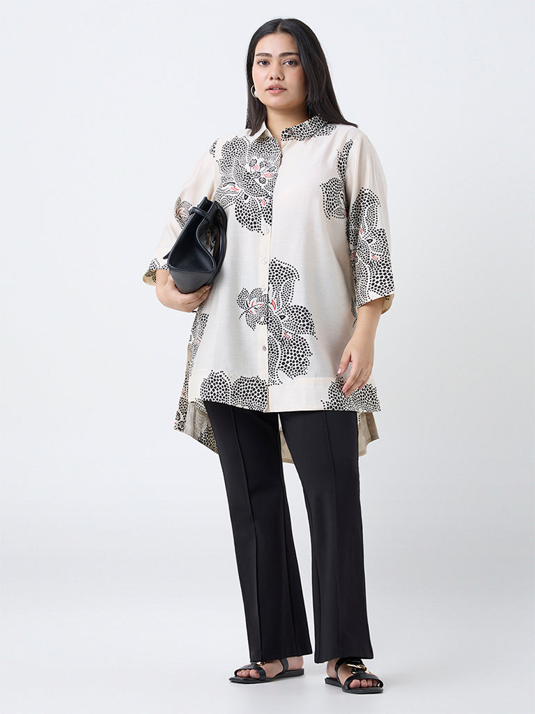Diza Cream Floral Printed High-Low Tunic