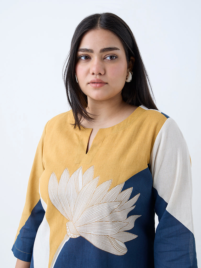 Fashioned in an elegant A-line silhouette, this multicolour kurta from Diza is milled from a premium cotton-blend fabric that moves with ease. Showcasing floral motifs at the front, it is finished with a split neck and three-quarter sleeves. A concealed slip pocket adds functionality without disrupting the flow.