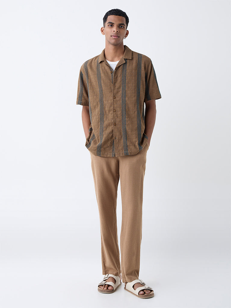 ETA Brown Embroidered Relaxed-Fit Cotton Shirt