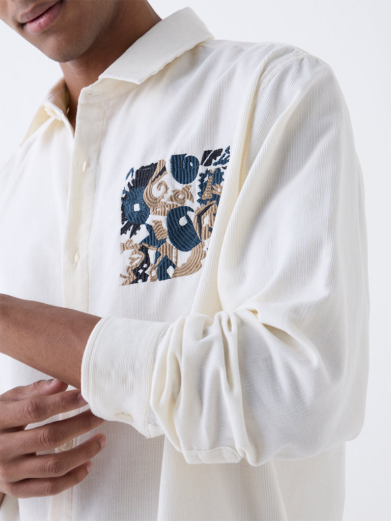 ETA Off-White Embroidered Relaxed-Fit Cotton Shirt