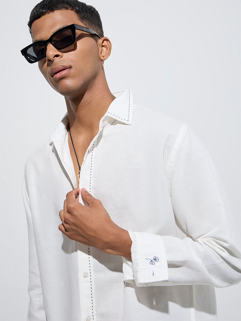 ETA White Relaxed-Fit Linen-Blend Shirt