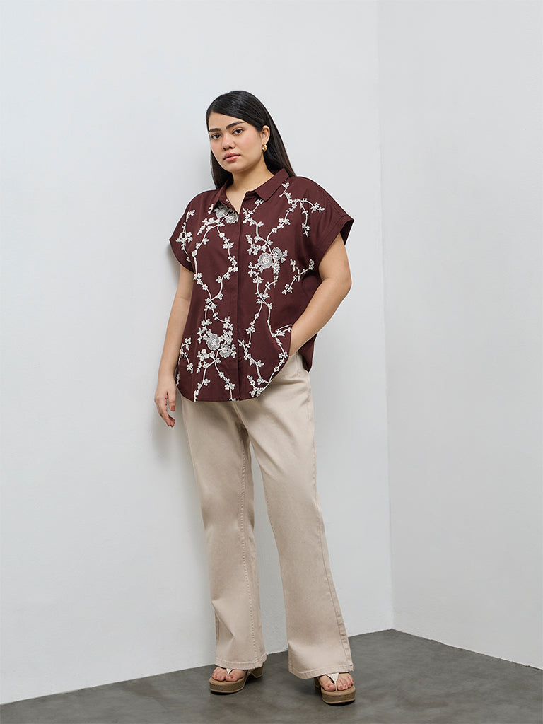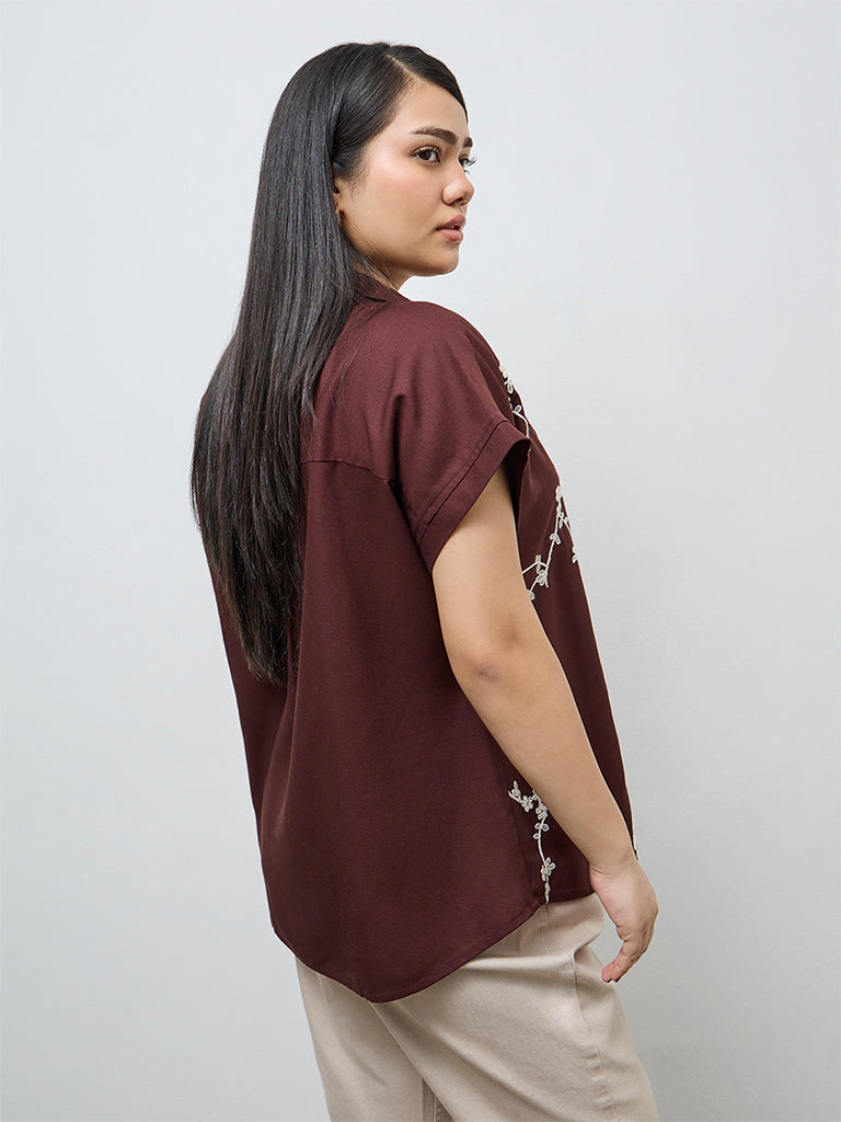 Gia Dark Brown Floral Embroidered Shirt