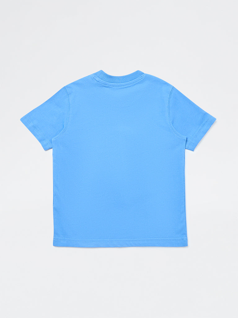 HOP Kids Boys Blue Graphic Design Cotton T-Shirt