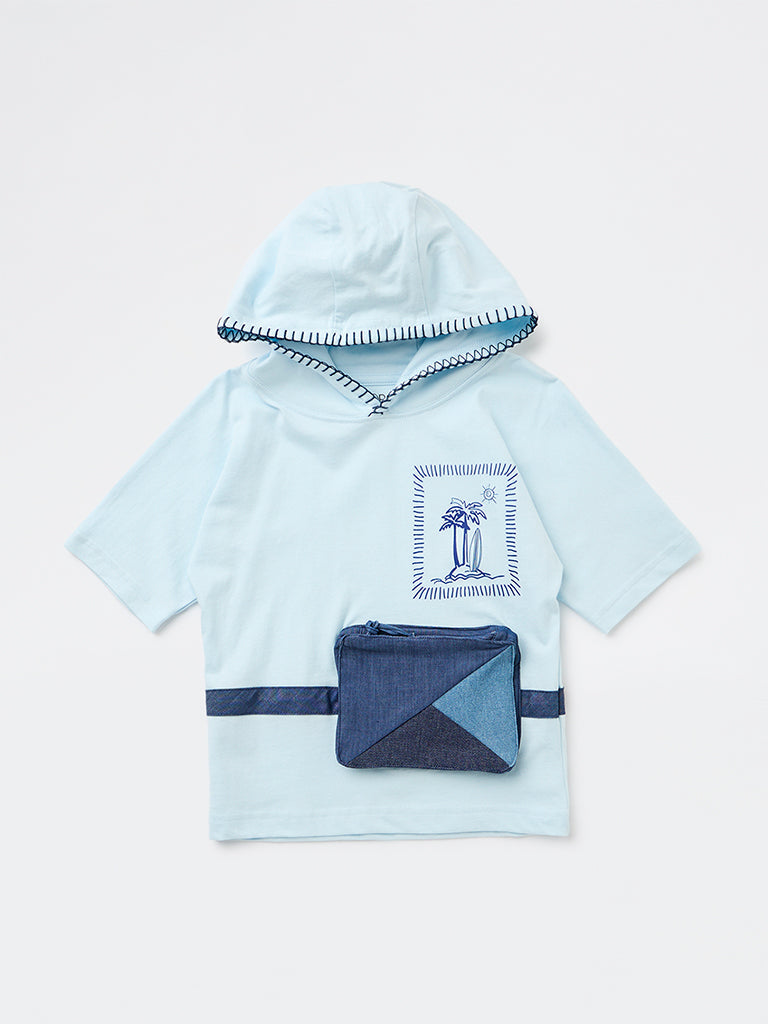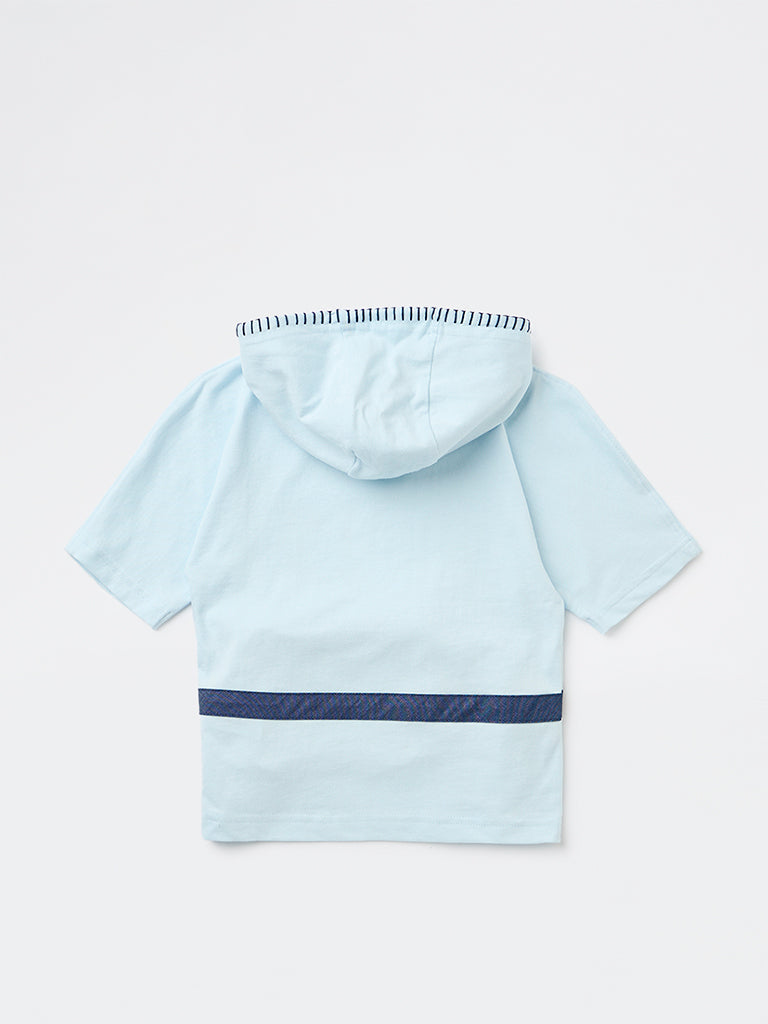 HOP Kids Boys Blue Pouch-Detailed Hooded Cotton T-Shirt